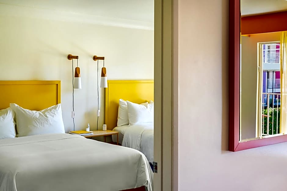 The Saguaro Palm Springsは、カリフォルニア州パームスプリングスの中心部に位置する、活気に満ちた4つ星ホテルです。1800 East Palm Canyon Driveに位置し、カラフルな美学と砂漠をイメージした雰囲気が特徴で、楽しくユニークな滞在を求める旅行者に人気です。